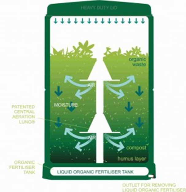 Garden Composter. Developed by an Australian company, this new technology came about as a result of concern for the carbon cycle on planet Earth. The unit has been tested and proven to achieve the highest performance in composting against world-ranking compost units at the Swinburne University of Technology, Environment & Biotechnology Centre.