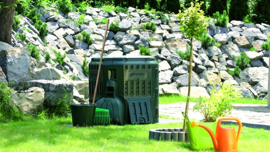 COMPOTHERMO is a 340/900-litre, high-density polyethene (HDPE) garden composter. Special treatment for increased resistance to sunlight and weather conditions. It has a large lid with a lock for easy loading of the material and 2 doors for extraction of the ready compost.