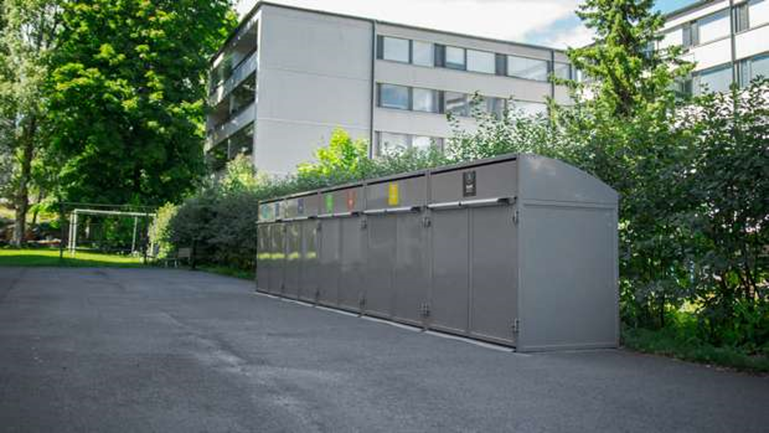 “Green Point“: a landscaped area with appropriate building infrastructure and equipment, organized by the Municipality so that citizens can dispose of recyclable materials, collected separately, such as paper, glass, metals, etc, to then be promoted for recycling reuse. Modular Modul Bin Shelters can be built in different sizes of recycling combinations. It can be used with all the commonly known waste bin models. Within a single container can accommodate two 240/360 l or one 660 l trash can. We have also taken into account the fire safety of waste collection points and Modul 1 model is also available as a fire-isolated version. The inside of the bin shelter is lined with A1 category non-combustible fireproof panels. The Finbin® Modul can build stylish waste collection points for residential houses and commercial real estate courtyard areas.