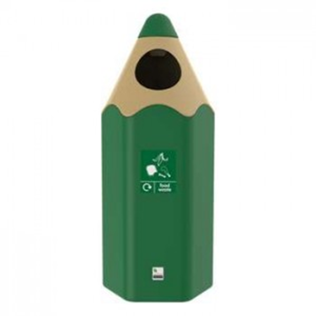 The recycling bin is Pencil-shaped, ideal for daycare stations. Compact and space-saving with a generous 70-litre capacity, pencil bins are ideal for use both indoors and outside.